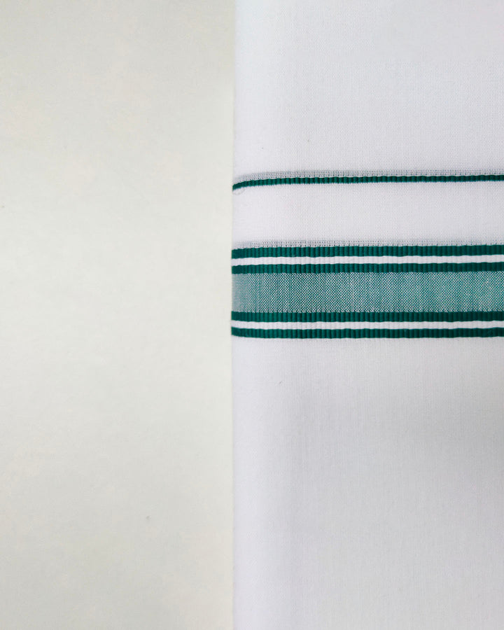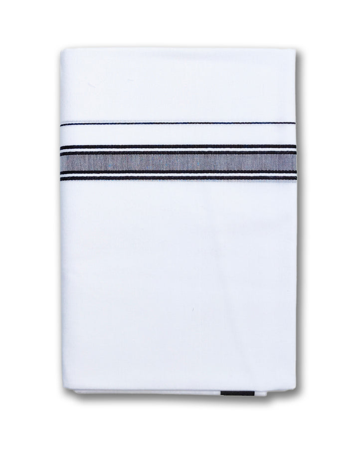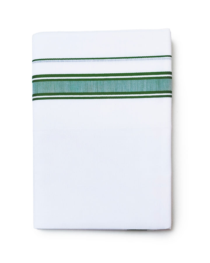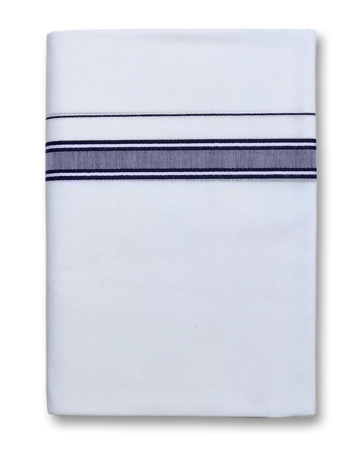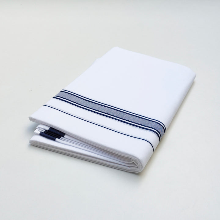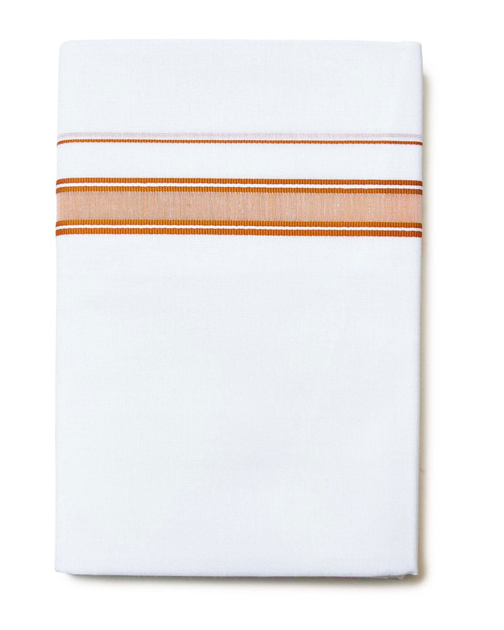 Pure cotton White dhoti with 1" VK Fancy border. Traditional wear for regular use an also for weddings and festivals. The fine quality of Cotton Yarns used makes the wearer feel More comfortable. Shop a traditional Dhoti online at Kalachar Online.